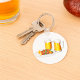 This design is beer and barbecue. There is two pints of beer and a plate of barbecue food. This beer and barbecue design looks great on this Keychain
