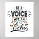 Word art Poster with a timely message to Be a Voice Not an Echo. Inspirational typography design motivates you to lift your unique voice for all that matters