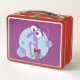 This is a standard metal lunchbox that appears to work just fine. We designed this box ourselves with an uploaded photo and custom text on the front and back. It looks absolutely beautiful except the front of the lunchbox is not centered like it shows in the photo. The print borders don't align with the inset flat part of the box where the preview photo online showed it perfectly centered in there. The back looks nice and centered though.