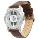I like the illustrative watch with the lady on it. It is a great reminder that I am blessed and it has a very sturdy leather band. The colors are true and vibrant. Love the color of the Leather also. Very nice.