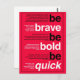 Be Brave. Be Bold. Be Quick. Motivational Quotes Postcard
