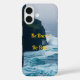 Motivational cliffside ocean view with text at the center inspiring courage and confidence, ideal for adventurous designs.