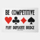Showcase your wry duplicate bridge sense of humor with this doormat featuring the four card suits along with the following sound advice for all who desire to compete with others: "Be Competitive Play Duplicate Bridge".