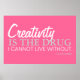 Creativity is the drug I cannot live without. Featuring the words of Cecil B. DeMille. This black poster with shades of gray and white is perfect for your student.