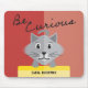 This Be Curious Dry Mouse Pad is for learners and educators who are inquisitive and humorous. The design features a grey Persian Kitty holding a yellow customizable note with a two-toned red background. The simple graphic illustration style provides a modern look that is perfect in the classroom or at home. Add your own name to make it your own. Be Curious!