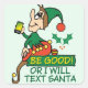 Be Good or I will Text Santa! Funny Christmas Saying with an Elf with a green and red suit. He's a modern Elf and he's watching you to see if you are bad or good this Holiday!