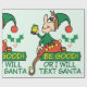 Be Good or I will Text Santa! Funny Christmas Saying with an Elf with a green and red suit. He's a modern Elf and he's watching you to see if you are bad or good this Holiday!