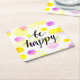 Modern calligraphy inspirational quote - be happy - at pink and yellow watercolor dots background | Bigstock® - All Rights Reserved.