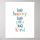 Colorful, cute "Be happy, be you, be kind" typography for any child's bedroom decor, and can be custom color matched with room colors by clicking on the "Customize further" link. Need assistance? Let me help. Message or email me with email in About bio above.