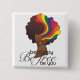 African American woman with natural hair. Hair has the rainbow which represents the LGBT pride flag. Underneath the image of the woman are the words, "Be Happy, Be Free, Be You".