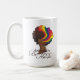This mug is from my Hers and Hers line. On one side of the mug is the image of an African American woman. She has natural hair, with rainbow stripes. The rainbow stripes represent the LGBT flag. One the other side of the mug is my logo.