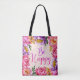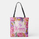 Useful and pretty tote bag with pink peony design and text "Be Happy".