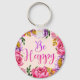 Pretty and feminine key ring with pink peony border and inspirational text 'Be Happy'.