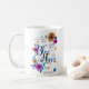 Be Happy Positive Quote Blue Purple Gold Flowers Coffee Mug