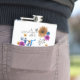 Add a personal touch to your drinking barware with a custom-made flask. "Be Happy" Positive Quote Blue Purple Gold Flowers Floral Drinking Flask. Inspirational and motivational quote. Great gift idea.