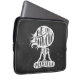 The sleeve is made of nice feeling material and seems very durable. I'm not sure how easy it'll be to clean, but the construction seems sound and the fabric is quick thick. I also like the double zipper. The printing is lovely and appears durable. The white on black contrast is nice, and the design very elegant.