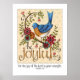 This contemporary hand-painted bluebird sits upon a branch of beautiful blossoms singing out "be joyful". Beneath the colorful art is the hand-lettered Bible verse Nehemiah 8:10... "For the joy of the Lord is your strength."