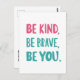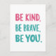 be kind be brave be you, inspirational quotes postcard