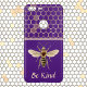 This design features a royal bee in black and gold against a purple background, with Be Kind written underneath. You can edit this text, such as adding your name instead, in the Personalized section. There's a golden line and honeycomb at the top of this design.
