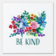 Inspirational Home Decor from an original watercolor floral. With the text "Be Kind", this Yard Sign art will be perfect for your Valentine's Day Gift, Mother's Day Gift, Friendship Day, or Birthday! Display or hang it at home to inspire all who pass through. Brightly colored modern floral in primary colors.