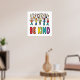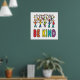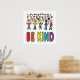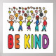 Be Kind design consists of a mixed group of many people above the message "Be Kind" in rainbow colours. An ethnically diverse image to suggest and support kindness among all people.