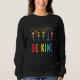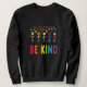 Be Kind design consists of a mixed group of many people above the message "Be Kind" in rainbow colors. An ethnically diverse image to suggest and support kindness among all people.
