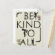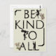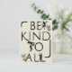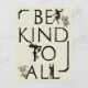 A hand-lettering quote "Be Kind To All" in black ink with watercolor flowers, fairies and vines make up this design. The background is a pale yellow, the text is black and the flowers are pale pink and green. An important message in this day and age to always be kind to all.