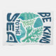 Spread awareness and positive vibes with this “Be Kind to the Sea” design featuring seaweed, coral, waves, and seashells in calming ocean tones.