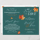 This classy & rustic "BeLeaf in Love" folded 8.5x11" 4-page wedding ceremony program, in jewel tone teal & rust / terracotta, is part of the fall leaves Autumn wedding invitation suite and features deep teal front & back cover with all the details you need on the white inside pages! Program is adorned with colorful watercolor fall maple leaves throughout the design with elegant script typography headline details. Pages include welcome cover, order of service, wedding party, in memory, and personal thank you message! Easily personalize the wording for your wedding ceremony, and you may even add / delete text, change the burnt orange background color, edit placement of design components, or even add your website QR code - once your add your details. To do so, click the blue "Edit using design tool" button at the bottom of the "Personalize" window, navigate to the "layers" tab in the left hand column of the screen, select the front or back side layer, then click on the layer element you would like to change and make it your own! ** Check out the entire matching suite including 2 save the date options, formal wedding invitation, details / wedding day timeline infographic mid-size enclosure card, formal rsvp card, darling belly band enclosure, return addressed envelope, and more coordinating designs in the teal & rust color "Be Leaf In Love" collection (burnt orange collection in this design is also available!) - scroll down to see the collection below, or head to my Zazzle storefront and view the collection in it's entirety there ♥ Custom designs / product requests and template questions are always welcome! Click the "message" button or email directly (with quick response time!): contact@figandlilyco.com. Design is lovingly created by Fig and Lily Studios - sending blessings and thanks!