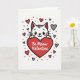 This Valentine's Day card features a hand-drawn cartoon cat head on a white background, looking straight ahead with wide dark eyes and a small, happy smile. The cat has soft grey fur with black outlines and a light pink blush on its cheeks, which makes it feel extra sweet. Its little paws hug a large red heart that sits across the lower part of the card. Inside that heart, the text reads “Be Meow Valentine” in a handwritten script style, centered and easy to spot. Around the main heart, several smaller hearts float in different shades of red and grey, with a few shown as simple sketchy shapes. The overall look is simple and warm, with the cat’s gentle expression carrying the message of affection. It’s a cute choice for a friend, crush, or partner, and it adds a little extra Valentine’s charm ❤️💌🍫.