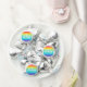 Beautiful custom rainbow Christmas party Hershey's Kisses in pretty bold colors that reads Be Merry and Bright. Cheerful personalized gay pride themed holiday dessert favor for an LGBTQ family.