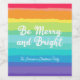 Beautiful rainbow Christmas party wine label in pretty bold colors that reads Be Merry and Bright. Cheerful gay pride themed holiday gifts for an LGBTQ family.
