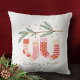 Add a festive and cheerful touch to your holiday home decor with this adorable seasonal throw pillow. Pillow has red and pink stockings hanging on a pine tree branch with the text be merry and bright.