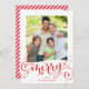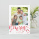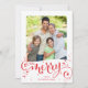 BE MERRY FAMILY photo modern fun script red Holiday Card