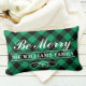 Be Merry Green Buffalo Plaid Family Monogram Lumbar Pillow