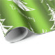 This festive, green and white Christmas wrapping paper features a modern pattern of white Christmas trees, with the words 'Be Merry' scattered over a bright, colorful green background.