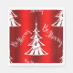 A stylish and festive red Christmas paper napkin featuring a modern white Christmas tree and the greeting, 'Be Merry' over a bright metallic red background to add an elegant touch to your Christmas dining table this year.