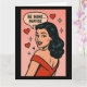 This pop art-inspired Valentine’s Day card delivers charm with a wink. Featuring a stylish woman in a red dress surrounded by hearts and sparkles, the playful message “BE MINE… MAYBE” adds just the right touch of sass. Perfect for Galentine’s gifting, flirtatious fun, or anyone who loves a little romance with a side of attitude.