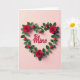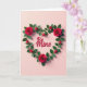 This greeting card shows a heart-shaped wreath made of red roses and green leaves on a blush pink background. Some roses are fully open while others are small buds, giving it a sweet, fresh look. The reds and greens stand out clearly against the soft pink, and gentle shading makes the wreath look like it’s floating slightly. In the center, the words “Be Mine” appear in smooth, flowing red lettering with a lightly raised look. The message sits right inside the heart, so it feels direct and sincere. It’s an easy card to give when you want to say you care without needing a lot of extra words 🥰. The roses and simple layout make it feel romantic, but also kind enough for someone you deeply appreciate ❤️.