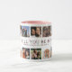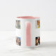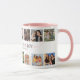Cute wedding attendant gift mug featuring 14 photos for you to replace with your own, the text "will you be my maid of honor?" in a light pink elegant script font, and a personalized proposal.