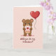 This design shows a cute cocoa-brown teddy bear standing in the middle against a soft blush-pink background. The bear has big black eyes and a calm, sweet expression, and it holds a light pink envelope with a small red heart on the front 💘. Above and a little to the right, there’s a shiny red heart balloon floating with a thin dark string hanging down toward the bear. A faint glow under the bear makes it feel like it’s in a gentle spotlight, keeping your attention on the little gift it’s offering. The colors stay simple—pink, brown, and red—so the message feels clear and warm ❤️. Along the bottom of the card, the text reads “Will you be my Valentine?” in flowing cursive lettering in a deep maroon color. It all comes together as a sweet, straightforward way to ask someone special to be your Valentine 😘. Hope it helps you share a little extra love on Valentine’s Day.