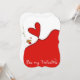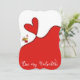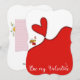A Valentine’s Day card illustrated in white and red featuring a cute bee carrying a present and text Be my Valentine