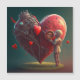 Be my valentine invintation card, a huge red heart and a person looking at it ..it looks technological as of a robot heart it makes you think that the person is in love and is thinking about his love or feeling so much in love or all of that ...being in love is a great feeling make us wonder..its a very modern design that many young people with artistic kind of taste would like this design ...This is my huge heart beating just for you only for you forever for you you are the only one i love now and for ever and ever ever
