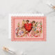 Celebrate your love with this cupid design and loving message. Four cupids embrace a bright red heart as they flutter through the air surrounded by roses and colorful ribbons. This version features a pink brocade background, a hint of shadowing to lift the silhouette off the background and the greeting ‘Be My Valentine’. It’s a perfect way to declare your love.