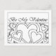 This beautiful black and white line drawing is ready to be colored in, for a unique DIY way to say "I Love You". This card features the phrase "Be My Valentine" and an accompanying assortment of heart designs.