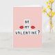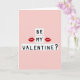 This Valentine's Day card features a soft pastel pink background with the question “BE MY VALENTINE?” placed right in the center. The words are set in chunky, hand-drawn black letters, each one sitting inside a simple white rectangle. The layout runs vertically, with “BE” at the top, “MY” in the middle, and “VALENTINE?” across the bottom. On both sides of “MY,” there are two bright red lip icons that look like a kiss mark, adding a sweet, flirty touch. The question mark at the end makes it feel a little nervous in a cute way, like someone working up the courage to ask. With lots of open space around the message, the design feels focused and easy to read, and it keeps the attention on the words. It’s a meaningful card to give when you want to be direct about your feelings while still keeping it light and affectionate 🥰❤️. Hope it helps you share your Valentine’s Day feelings in a simple, heartfelt way.