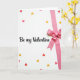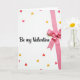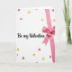 This card shows a white background with the words “Be my Valentine” printed on the left side in flowing black cursive-style lettering. A pink grosgrain ribbon runs diagonally from the top right corner, ending in a neatly tied bow that looks like a gift wrap. The ribbon’s ridged texture stands out against the smooth white space, making the bow feel special and intentional. Small hearts are scattered around the card like confetti, in warm yellow-orange and deep red. The hearts are unevenly spaced, which makes the layout feel relaxed and sweet rather than stiff. Altogether, it gives a simple, romantic feeling that works for a partner or someone you care about 🥰. It’s a meaningful card because the message is direct, and the little details make it feel like you’re offering love with care ❤️. Hope it helps you share your Valentine’s Day sentiments.