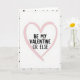 This card features a large heart drawn in a soft blush pink, with slightly uneven brush-like edges that make it feel human and sweet. In the center of the heart, the message reads “BE MY VALENTINE OR ELSE” in rounded black sans‑serif letters. The words sit right in the middle, making the joke the first thing you notice. The background is plain white, so the pink heart and black text stand out clearly. Around the edges, irregular black polka dots form a loose border that adds a casual, fun frame. The mix of a gentle heart and a teasing line makes it great for someone you’re close to, whether it’s a partner or a good friend 🥰. It says “I like you” with a bit of humor, which can feel easier than being overly serious ❤️.