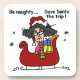 Be naughty and save Santa the trip! Funny holiday T-shirts, sweatshirts, magnets, mugs, cards, stickers, tote bags, keychains, mousepads, pillows, placemats, and other holiday humor apparel and gifts featuring Stella in Santa's sleigh.