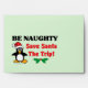 Be Naughty! Save Santa The Trip! Image / illustration of a Penguin wearing Santa's hat with a funny and amusing Christmas saying. Make the Holidays fun with this cute penguin design.